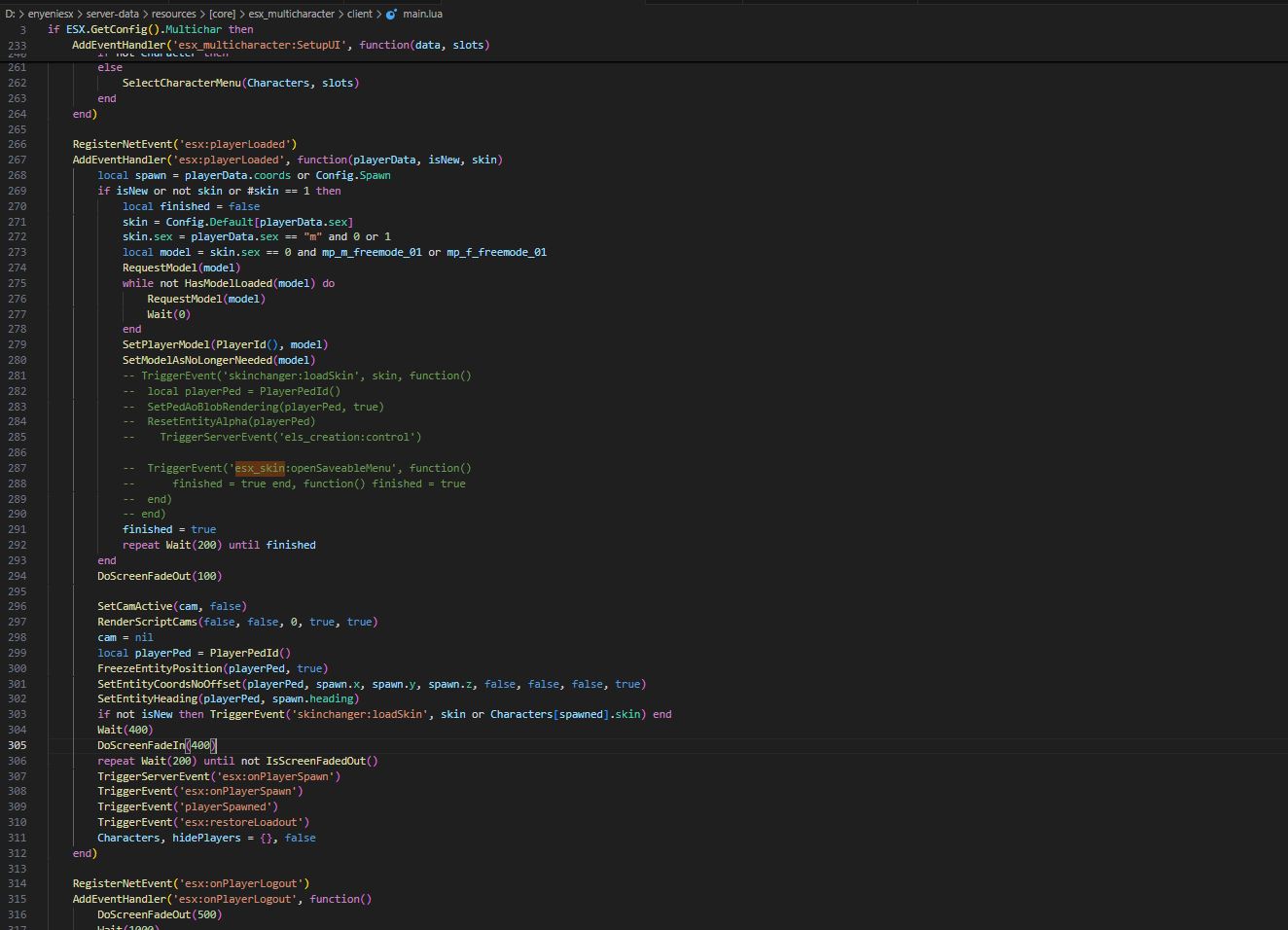 if not isNew then TriggerEvent('skinchanger:loadSkin', skin or Characters[spawned].skin) end